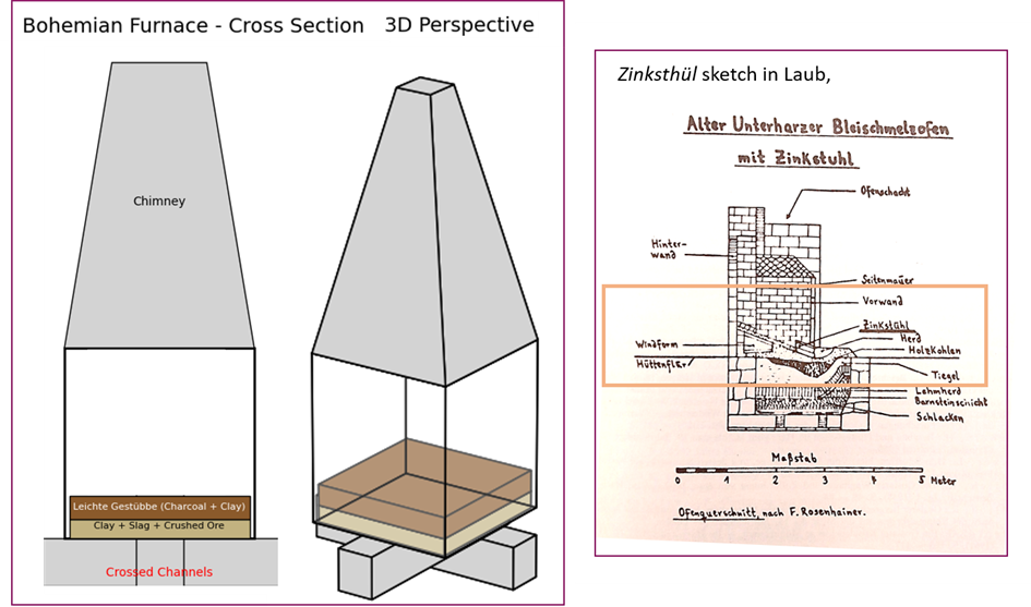The rediscovery of this method in the late medieval Harz led to increasingly advanced technological solutions aimed at maximising the recovery of zinc, both as oxide and as metal, culminating in specialised installations such as the Zinkstuhl typical of the Harz area in early modern times. The Bohemian furnace was instead an innovation brought by the experienced Czech metallurgists.